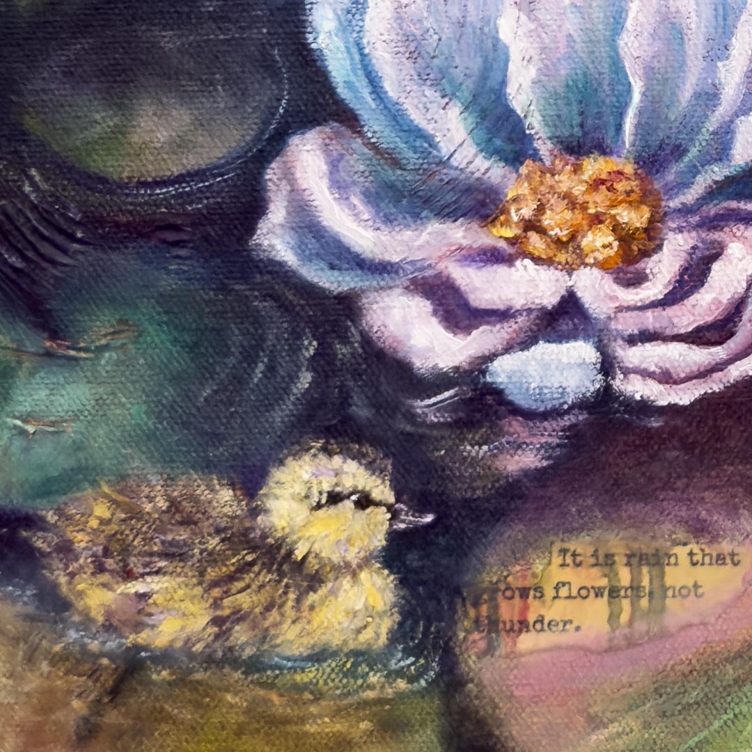 16" x 20" Oil on mixed media on a gallery wrapped canvas. Ready to hang!